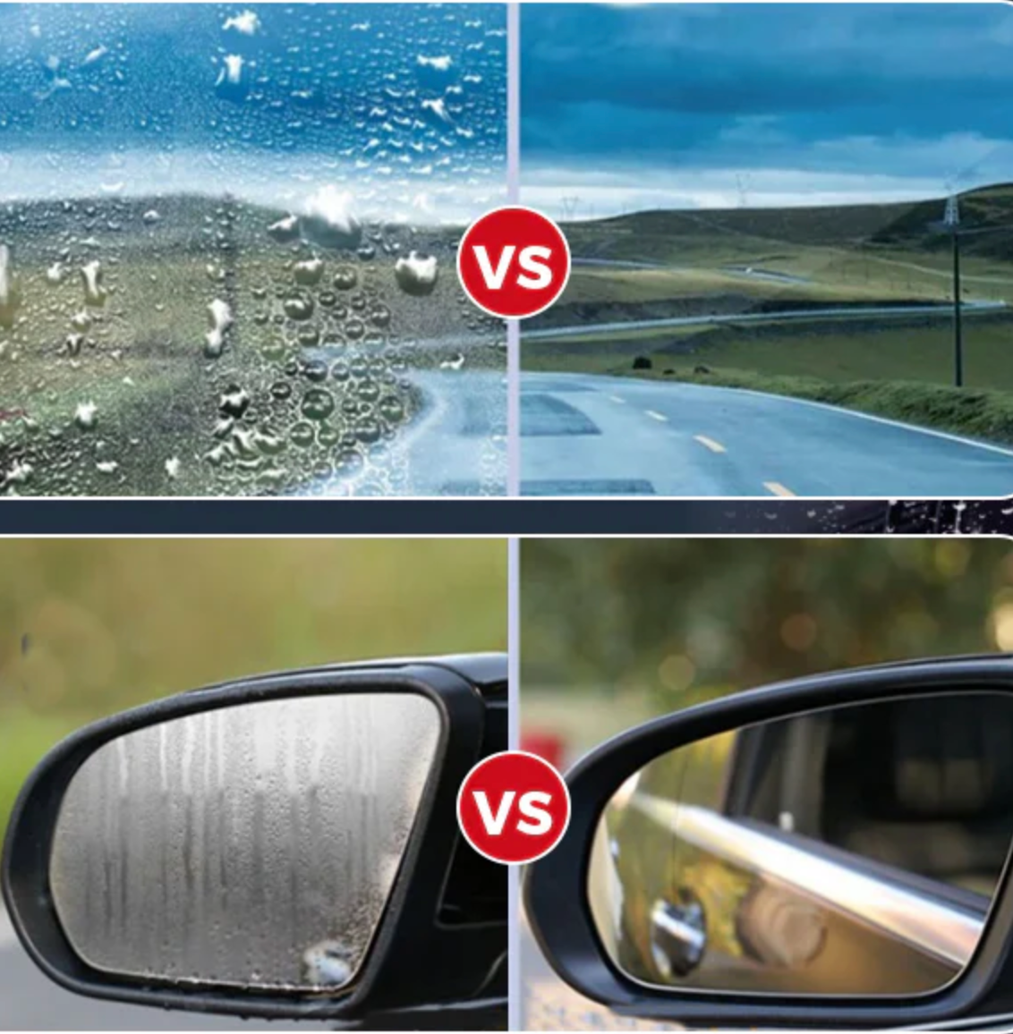 - Överlägsen vattenavstötning: Avvisar omedelbart regn, gör körningen säkrare och minskar behovet av vindrutetorkare.